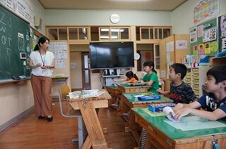 小学校1~4年。4名の授業の様子です。 音楽は、4名合同で、他の教科は、各学年で授業を受けています。