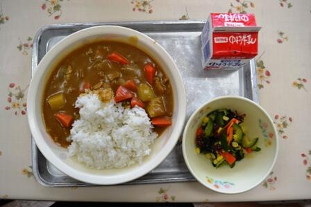 麦ごはん・ほねっこカレー・海藻サラダ・牛乳