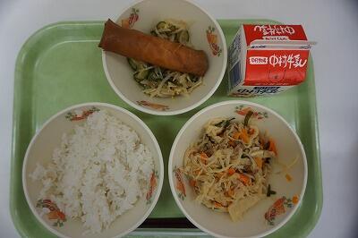 麦ごはん・牛乳・揚げ春巻き・千切りイリチー・きゅうりのナムル