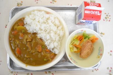 麦ごはん・野菜カレー・とんかつ・ゆで野菜・牛乳