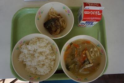 麦ごはん・牛乳・根菜のみそ汁・さば生姜煮・ごまあえ
