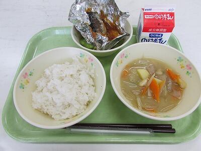 今日の献立は、麦ご飯、牛乳、根菜のみそ汁、さばのホイル焼き、枝豆でした。根菜のみそ汁は具沢山でおいしかったです。さばのホイル焼きは、さばの身がふっくらしていました。