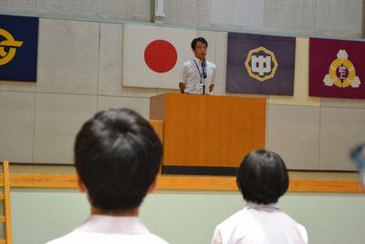 2学期最初の、校長先生のお話です。校長先生は2学期の目標で『1日10回ありがとうを伝えよう』とたてたそうです。夏の甲子園を制した慶應義塾高校の合い言葉は、『ありがとう』と感謝することでした。どんどん勝ち進んでいった慶応義塾高校は、ついに優勝します。感謝する!気持ち。言葉だけでなく、気持ちをのせて『ありがとう』とみんなで実践していきたいですね。