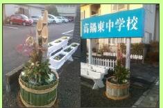 文今年は、東中、東小の正門に門松を飾ることができました。これは、東校区コミュニティ・スクールが中心となった取組で実現しました。ご協力いただきました岩切建設さん、福岡生花店さん、保護者、地域の皆様に感謝申し上げます。