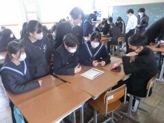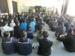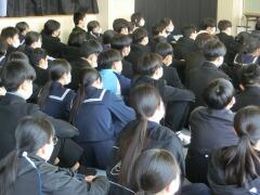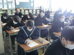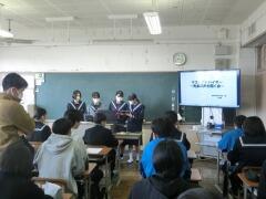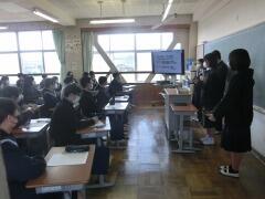 県立入試が終わった今日、受検を終えた3年生のみんなが手分けをして1,2年生の各学級に行き、自分たちの経験について語る「ゲストティーチャー」が行われました。自分の進路決定や受験勉強の仕方などについてプレゼンを使って丁寧に話してくれました。後輩たちもメモを取りながら一生懸命聞き入っていました。今日の話を参考にして、これから頑張ってくれることでしょう。3年生のみんな、ありがとう!