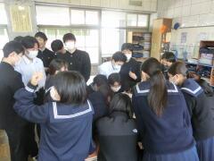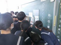 その後、3年生との最後の思い出を作ろうと、生徒会主催の送別行事が行われました。1,2年生の生徒会役員が計画、準備をしてくれて、謎解きやクイズなど、クラス対抗で競い、盛り上がりました。3年生も昨日までの緊張から解き放たれたように笑顔で楽しんでいました。