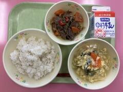 昨日の給食は、麦ご飯、いももち汁、サバ味噌煮、ごま酢和え、牛乳 でした。味わい深いサバの味噌煮にいももち汁と落ち着く和食の組み合わせで、ご飯をおいしくいただくことができました。