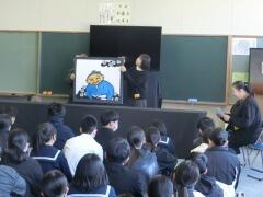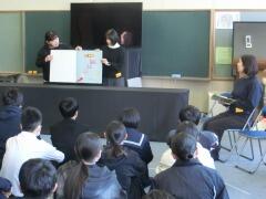 毎年恒例の「卒業お話し会」が行われました。毎月、読み聞かせに来てくださっている「夢book」の方々が、卒業する3年生のために特別読み聞かせの会を開いてくださいます。今日も拡大絵本やBGMなどを使って、たくさんの絵本を読み聞かせしてくださいました。3年生のみんなも真剣に見入っていました。きっと中学校最後の思い出に残る読み聞かせになったことと思います。ありがとうございました。