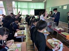 卒業式に向けて、給食の取材