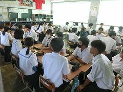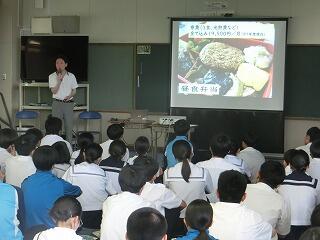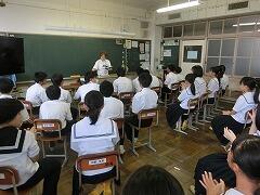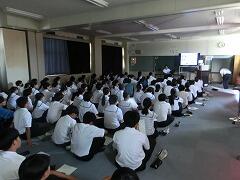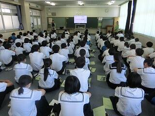 総合的な学習の時間に「ふるさと講話」が行われました。今回は、地元の高校である高鍋高校と高鍋農業高校から校長先生が来校され、それぞれの高校の説明をしてくださいました。3年生のみんなは、とても熱心に聞き入っていて、きっと自分の進学先に思いをはせていたことと思います。