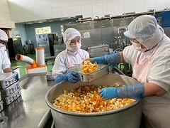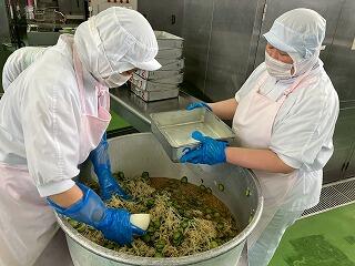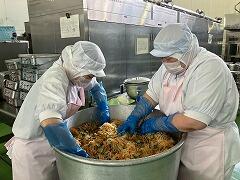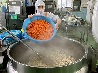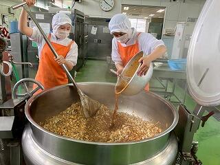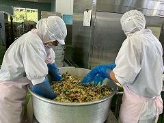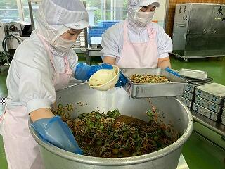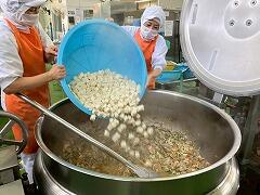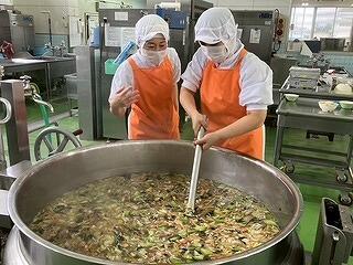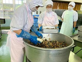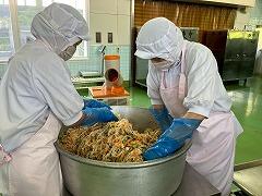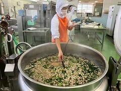 今日の給食は、麦ご飯、豚肉と里芋の含め煮、納豆サラダ、みかん、牛乳 でした。含め煮はたくさんの具が入っていて、それぞれの食感や味わいが楽しめ、とてもおいしかったです。リクエストの納豆サラダも生徒たちに大好評のようすでした。