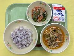 昨日の給食は、麦ご飯、豆腐と野菜のごま風味スープ、タッカルビ、牛乳 でした。タッカルビとスープの組み合わせが絶妙で、とてもおいしかったです。特にタッカルビは、コチュジャンの味付けがご飯にぴったりで、箸が止まりませんでした。