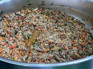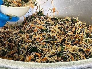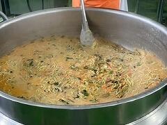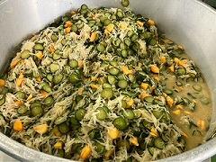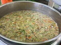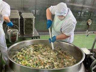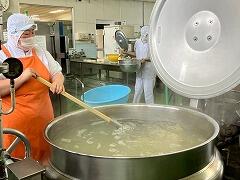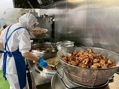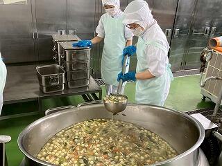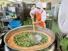 今日の給食は、麦ご飯、鶏肉の塩スープ、大豆と小魚の揚げ煮、牛乳 でした。鶏肉の油と塩味が程よく合わさった塩スープがとてもおいしかったです。ビーフンやウズラの卵などの具材も最高でした。