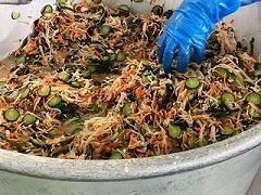 今日の給食は、梅菜ご飯、うどんすき、ひじきとごぼうのサラダ、牛乳 でした。梅の食感もあり、味とともにとても楽しめました。そこに甘いお出汁のうどんすき、サラダと最高においしかったです。