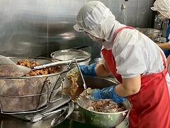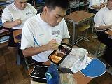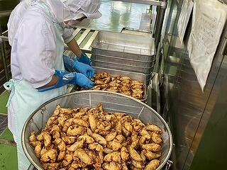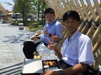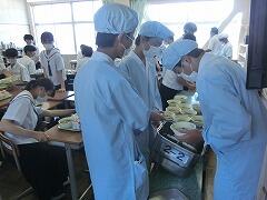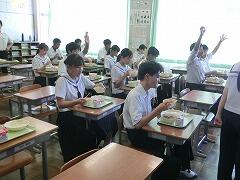 今日の給食はひむか地産地消の日の献立で、麦ご飯、かき玉汁、チキン南蛮、きゅうりのコロコロ漬け、牛乳 でした。宮崎を代表する郷土食、チキン南蛮。もちろん生徒たちも大好きで、笑顔いっぱいに食べていました。