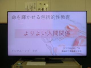 3年生の学級活動の時間に、性教育の講演会を行いました。講師は、「命を輝かせる包括的性教育~インクルーシブ・ラボ」の坂本麻季子さんでした。内容は、誰もが安心・安全・自由に生きる社会を創るための知恵を学ぶ人権教育としての性教育で、とてもためになるお話でした。生徒たちも一生懸命聞いていて、今後に生かしてくれることと思います。