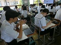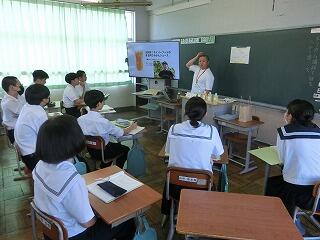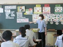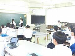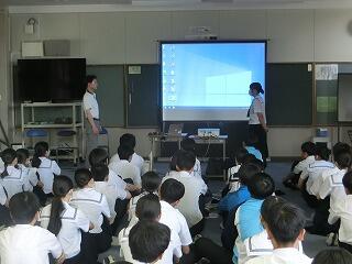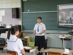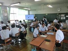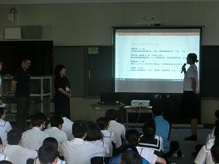 総合的な学習の時間に、1年生を対象にプレゼン講習会が行われました。生徒たちが生きていくこれからの社会では、自分の考えや企画を他者に伝え、理解・納得してもらい、行動を促す「プレゼンテーション能力」が必須のスキルとなると言われています。今日は、地域で町おこしに取り組まれている株式会社イツノマから2名の講師の方に教えていただきました。生徒たちは、説明を聞いたり、友達と練習し合ったりしながらプレゼンの仕方を学んでいました。きっと近い将来、今日学んだことを生かす日がくることと思います。