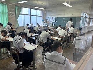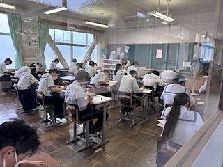 今日から2日間の日程で、校内テストが行われます。今日は1日目。これまでの勉強の成果を発揮すべく、みんな集中して取り組んでいました。明日まで、頑張ってください。