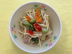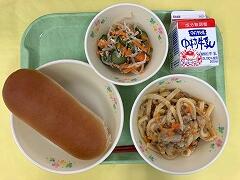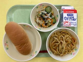 先週の金曜日の給食は、コッペパン、カレーうどん、海藻サラダ、牛乳 でした。カレーうどんがとてもおいしかったです。コクがあって、麵ののどごしも最高でした。週の締めにふさわしいメニューでした。