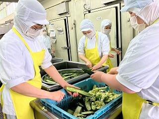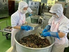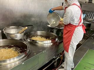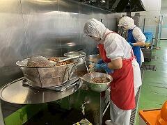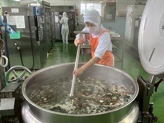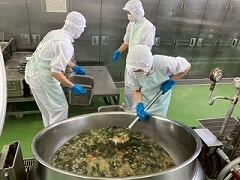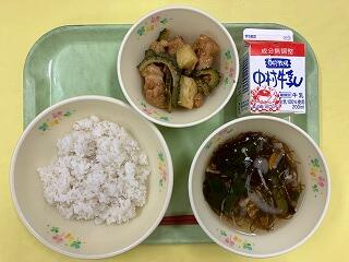 今日の給食は、麦ご飯、もずくスープ、鶏肉とゴーヤの揚げ煮、牛乳 です。もずくスープが絶品でした。味付けはもちろん、もずくの食感とスープのとろみが相まって、最高においしかったです。揚げ煮は、ゴーヤに苦戦している生徒もいたようですが、とてもおいしかったです。