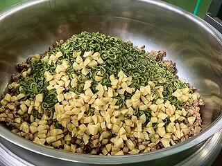 今日の給食は、麦ご飯、ほうとう、いわしのみぞれ煮、ゆかり和え、牛乳 でした。今日の主菜「ほうとう」について、教室を回って生徒たちに聞いてみました。名前やどこの県の郷土料理なのか知らない生徒がほとんどでした。給食を通して、日本の郷土食について学ぶことができるなんてすばらしいですね。麵がもちもちで白菜、カボチャ、鶏肉、油揚げなど具だくさん、最高においしかったです。