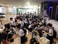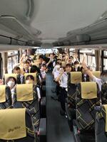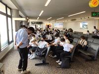 修学旅行、当日となりました。朝早い集合時間にもかかわらず、たくさんの保護者の方々に見送っていただきながら出発しました。スローガンの「全力で学び、全力で遊ぶ!」が達成できるように頑張ってきます。