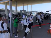 宮崎空港に到着しました。搭乗手続き、手荷物検査を無事に終え、飛行機に乗り込むのを待っています。初めて飛行機に乗る子は、ここまでで緊張したことと思います。