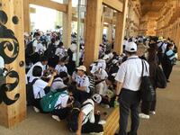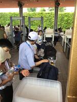とにかく広い!大きい!人が多い!そして、暑いです。朝が早かったので、とりあえず中でお弁当を食べてから見学します。