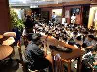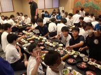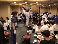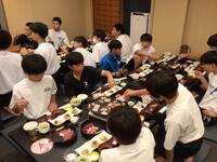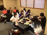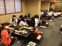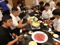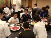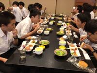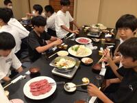 ホテルに着いて、お風呂を済ませ、待ちに待った晩御飯です。みんな昼食が早かったのと、昼間歩き回ったのでみんな腹ペコのようす。ものすごい勢いで食べています。しっかり食べて、明日に備えて欲しいです。