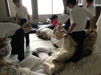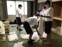 今朝は、6時起床。身支度をして、6:40から朝食です。まず部屋の片付け、友だちと協力して布団やシーツをたたみます。これもいい経験ですね。