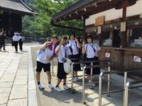 自主研修チェックポイントの一つ、清水寺。京都に来たら、ここは外せません。生徒たちもたくさん参拝していました。清水寺に限ったことではありませんが、本当に外国の方が多いです。