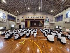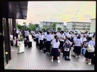 今日は、明日からの修学旅行に伴う日曜授業でした。2年生は4時間目に学年集会を開き、最後の確認と見学先に応じた隊形づくりの練習を行いました。これで準備万端整いました。明日、出発します。