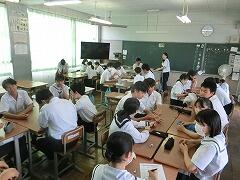 現代社会において、スマホやタブレット等は欠かせないものになっていて、学校の授業でもその活用が進んでいます。一方で、スマホの使い過ぎによる悪影響が問題となっています。特に、青年期(小・中・高校生)においては、注意力や集中力の低下、視力低下、睡眠障害などの健康面への悪影響はもちろん、SNSによる対人関係のこじれにつながる場合も少なくありません。今日は、全校一斉に「スマホとの上手な付き合い方」の授業を実施しました。中学校は、将来につながる大切な進路決定の時期でもあります。自分の力でコントロールできるようになってほしいと思います。
