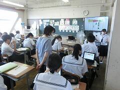 1年生の家庭科の授業を参観しました。授業では、日常生活でものを購入する際の支払いの方法にはどのようなものがあるかを考え、現金払いとその他の支払い方法のメリット、デメリットについて個人で考え、その後グループで考えを出し合い深めていきました。社会人になる前に必ず身につけておかなければならない知識だなと感じました。