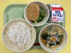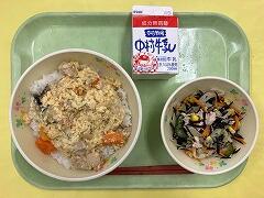 今日の給食は、そぼろ丼(麦ご飯)、きゅうりとわかめの酢の物、ヨーグルト、牛乳 でした。そぼろ丼の具はもちろんですが、甘辛い汁を吸ったご飯がおいしすぎて、一気に食べ進めてしまいました。おいしかったです。