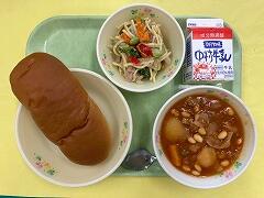 今日の給食は、コッペパン、チリコンカン、チーズサラダ、牛乳 でした。チリコンカンはメキシコ料理だそうです。これまで給食で食べたことはありますが、日常ではあまり食べる機会がありません。給食は食の幅も広げてくれるので、本当にありがたいです。今週もごちそうさまでした。