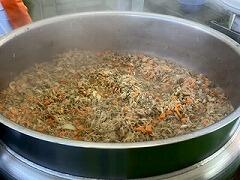 今日の給食も生徒たちのリクエスト、キムタクご飯、野菜スープ、かぼちゃとさつまいものコロッケ、添えキャベツ、牛乳 でした。キムタクご飯は、本当に考えた人はすごいですね。主菜、副菜も含め、とてもおいしかったです。