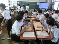 今日の午後、高鍋町の研究実践報告会が本校で開催されました。生徒たちの学力向上を目指し、町内4校でそれぞれ研究実践に取り組んでいます。今年は、高鍋東中学校が5つの授業を公開し、その後研究協議を行いました。たくさんの先生方が見守る中、少し緊張の様子が見られた生徒たちでしたが、発表や活動に一生懸命取り組んでいました。これからも、生徒たちの学力向上のため、頑張っていきます。