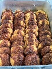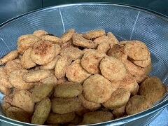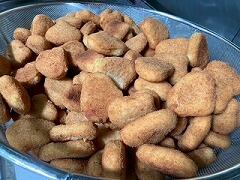 今日の給食は、ココア揚げパン、肉団子スープ、花野菜サラダ、牛乳 でした。ココア揚げパンは生徒のリクエスト第2位だそうで、みんな大喜びでした。純ココアが使用されているだけあって最高においしかったです。もちろん、スープとサラダも!