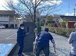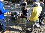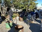 12月19日 9時30分に集合し、作業が始まりました。竹を割ったり、ゴザを巻き、その上に竹を巻いたりし土台をつくり、3本の竹をさして、周りに花を飾り完成しました。土台にひもを7回と5回巻いたり、竹に3回巻いたりと大変学ぶこともありました。最後には立派な門松が二つ出来上がりました。参加していただいた有志の方が大変ありがとうござました。またお疲れ様でした!!