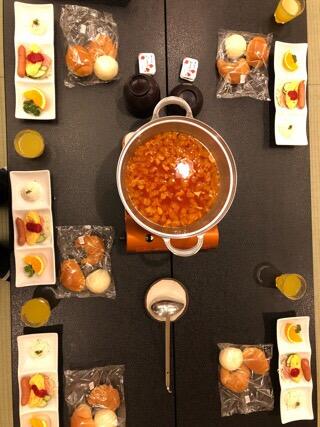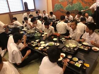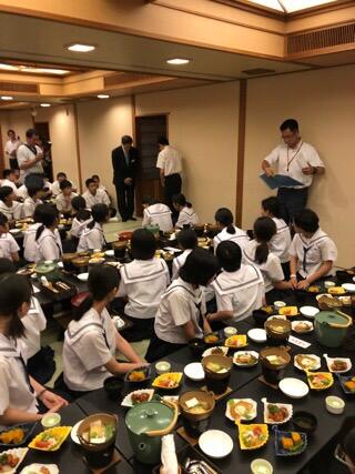 ホテルで入館式の後、美味しいご馳走を食べています。