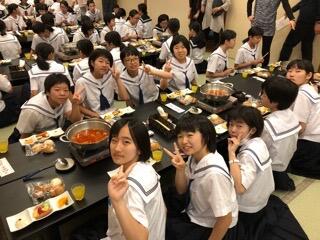 今日の給食は、麦ご飯、ほうとう、いわしのみぞれ煮、ゆかり和え、牛乳 でした。今日の主菜「ほうとう」について、教室を回って生徒たちに聞いてみました。名前やどこの県の郷土料理なのか知らない生徒がほとんどでした。給食を通して、日本の郷土食について学ぶことができるなんてすばらしいですね。麵がもちもちで白菜、カボチャ、鶏肉、油揚げなど具だくさん、最高においしかったです。