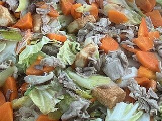 椎茸、白菜、人参、たくさんの野菜が使われています。