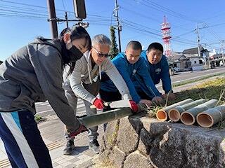 寒さが少しずつ厳しくなるにしたがって、年の瀬が迫ってきています。今週の土曜日に、お正月の準備のひとつ、門松づくりが高鍋東小学校で行われます。今日、PTAや町内企業の方々と一緒に、その竹を切りに行ってきました。竹をご提供いただいたのも町内の方で、本当に皆様に支えていただいているなあと実感したところです。来週には飾り付けられていると思いますので、近くをお通りの際はご覧ください。