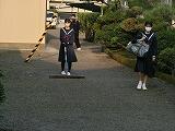 今日も生徒たちは元気に登校しています!伝統の「目立て」も行われていました。