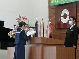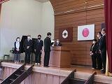 放課後、町中学生海外短期留学派遣事業出発式が行われました。本町から4名の中学生が参加します。