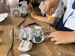 身の回りにある電子機器の内部を知る意味でも、とても貴重な学習、経験をしていました。みんな、頑張って完成させてください。