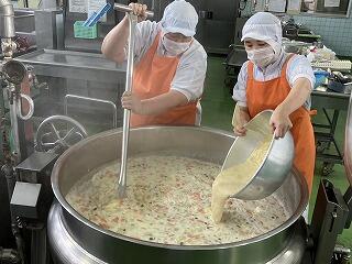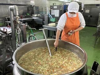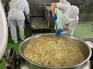 最後にカレーを作っているところです。たくさんの工程があって、給食ができるんですね。調理員の皆さん、いつもありがとうございます。