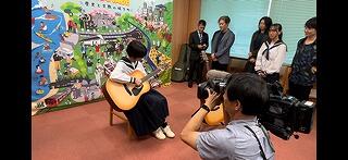 モーリスギターで有名なモリダイラ楽器様から、ギターをいただきました。週末に開催されるイベントのために来町されていた同社関係者の方々が、地元の中学生にもっとギターに親しんでほしいということでプレゼントしてくださったもの。代表生徒が、いただいたギターで一曲披露する場面もあってとても盛り上がりました。これから学校で大切に活用していきたいと思います。