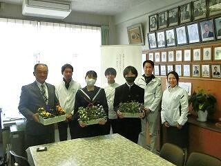 高鍋町のジェイエイ・アグリシード様から、花の苗を寄贈していただきました。地域貢献の一環として行われている花の苗の寄贈、今年で7年目になるそうです。パンジー・ビオラ・葉ボタンの苗、合計500鉢が、環境委員会の代表生徒2名に贈呈されました。本当にありがとうございます。大切に育てていきます。